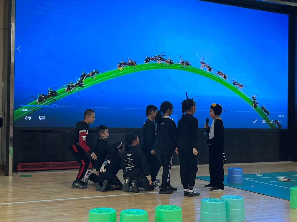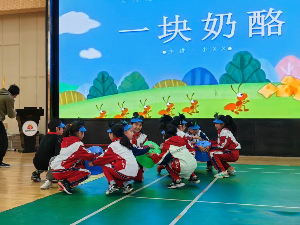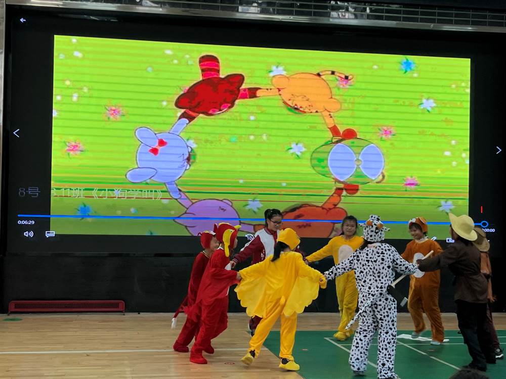 在整个表演过程中,场上小演员们都全身心地投入其中,把课本中的故事“搬"上了舞台,把 课本中的人物扮演得惟妙惟肖,场面精彩纷呈、高潮此起彼伏。《西门豹治邺》《亡羊补牢》《老鼠嫁女》 《一块奶酪》 《小狗学叫》 《陶罐和铁罐》 《小英雄雨来》 《唯一的听众》 《青蛙卖池塘》《总也到不了的老屋》《我是阳光好少年》《为中华之崛起而读书》...... 孩子们跳出了课本学习的局限,来到了广阔的演绎天地,尽情诠释自己对课文的理解。他们以饱满的情感、极具感染力的表演和默契的配合,生动的再现了故事中的人物形象,给观众留下深刻的印象。展演过程中,小演员们褪去羞涩,大胆发挥,精彩演绎。他们的自信、阳光、富有创意的表演得到了老师和同学们的认可,整场活动高潮迭起、掌声雷动。
