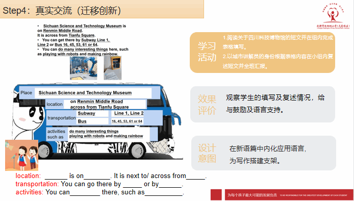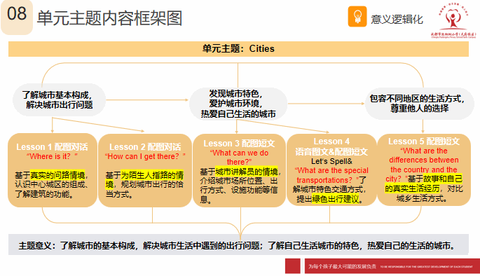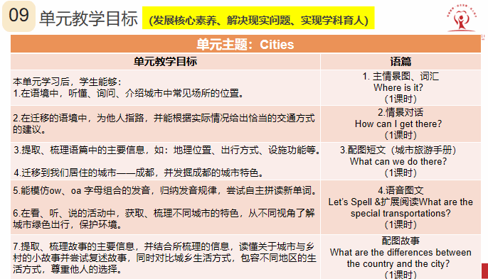 我们从设计理念、单元分析、教学设计及拓展资源几方面进行了解读。根据上周樊老师及李老师的指导,我们结合课标对单元主题进一步解读及分析,对主题意义及子主题,语篇的逻辑起点及活动设计地进阶性进行更深入地挖掘,对学生的语言储备、认知特点、生活经验及潜在困难进行整理,最终呈现了围绕主题意义展开、体现语篇间联系、以学生为主体、基于情境、主问题下小问题链为引导的的教学设计及教材分析。