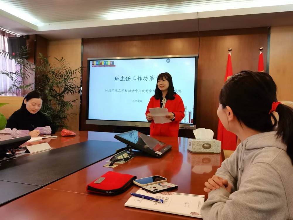 3月13日上午第四节课,六年级班主任老师们齐聚一堂,召开了本学期第一次班主任工作坊,本期班主任工作坊以开学的搬书活动和未来学校讲座为载体,以活动中常出现的常规问题为切入口,大家畅谈了应对策略。