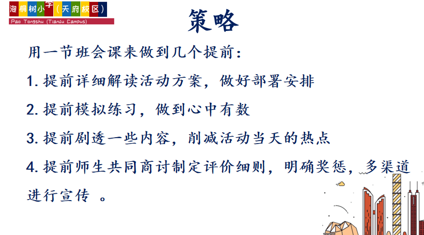 她认为活动前应用一节班会课做到几个提前: