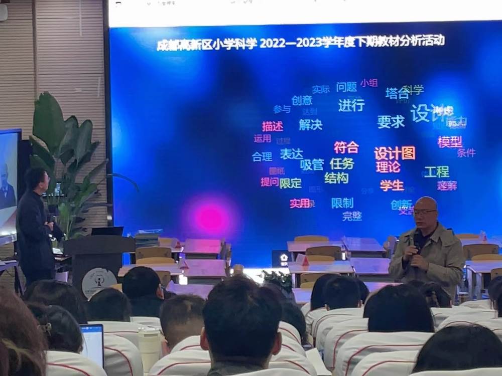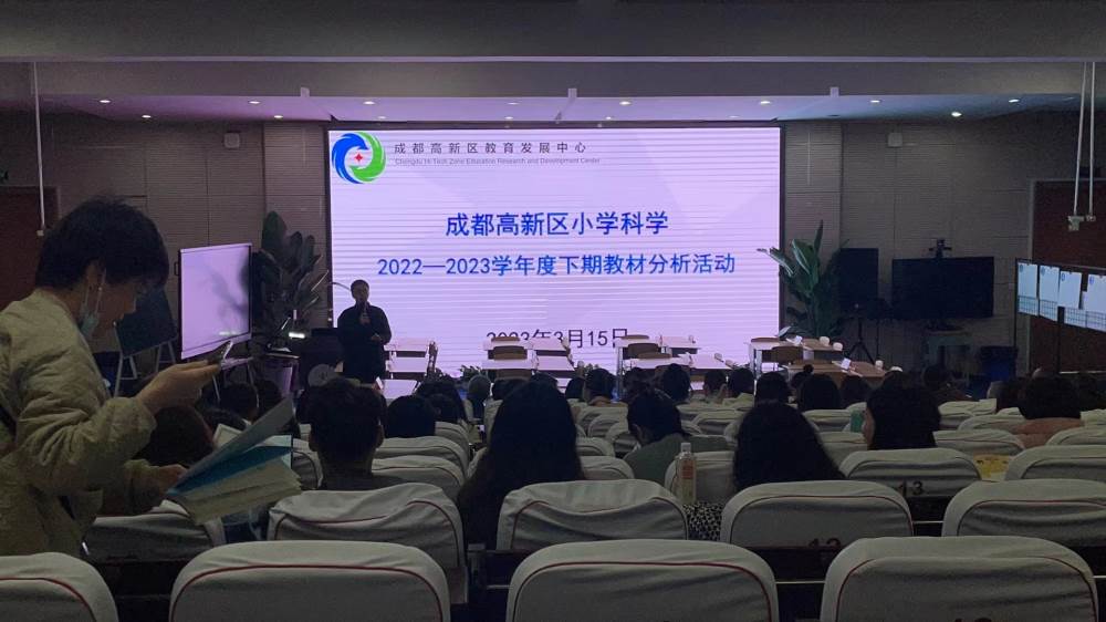 2023年3月15日,“成都市高新区小学科学2022-2023学年度下期教材分析活动”在我校多功能厅举行。本次教研活动由区教研员邱锐老师主持,高新区各学校科学老师参与了本次教研活动。