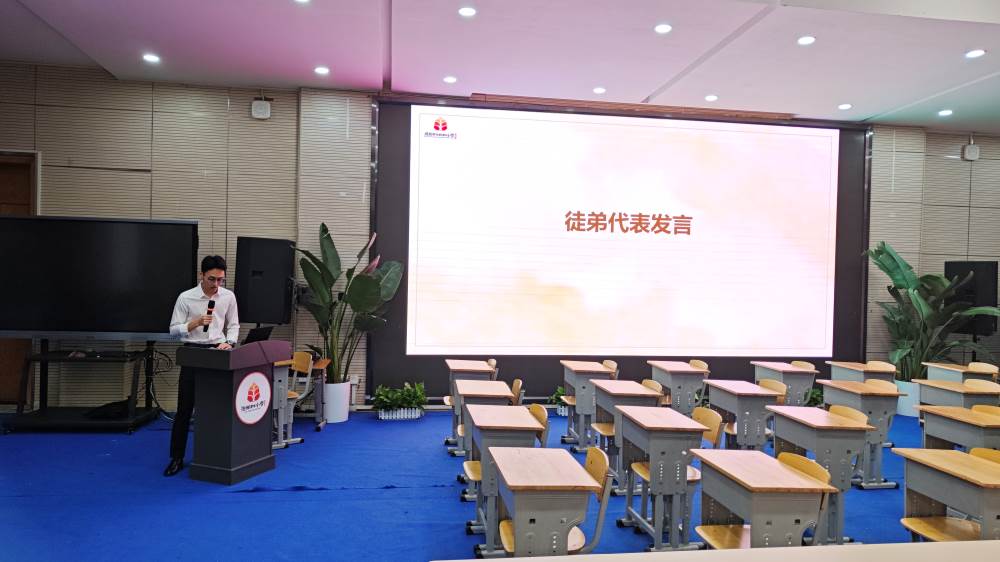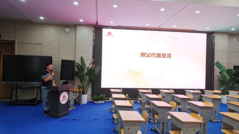 随后,杨松松老师作为徒弟代表发言。他表达了自己对于成为新教师的信心和决心,表示将虚心向有经验的老师们学习,不断提高自己的教学能力和专业素养。杨老师的发言展现了新一代教师的追求与担当。