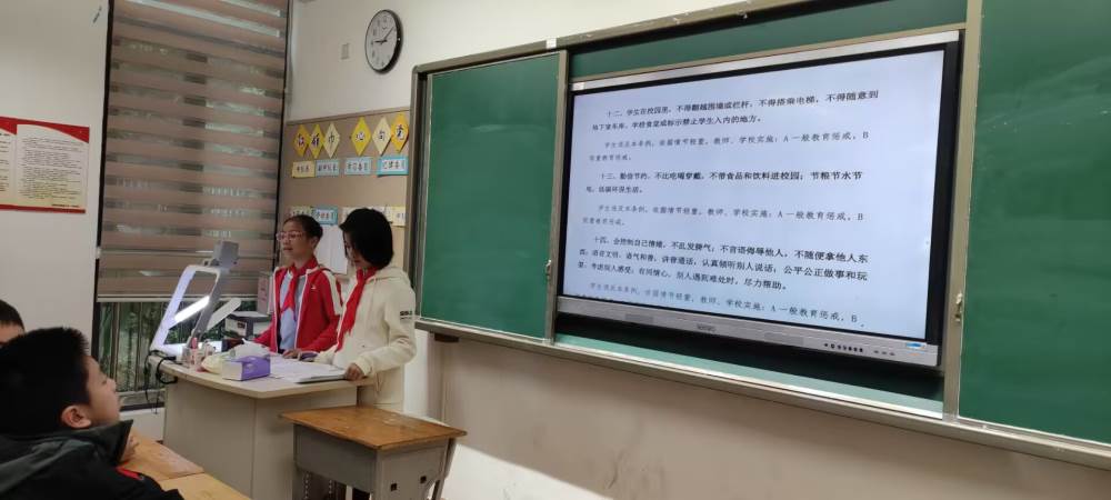 10月12日,六年级组各班利用班会队课再次温习校规,以“遵规守纪,行止有度”为主题,倡导学生规范自身言行举止,引导学生恪守法律法规、遵守校规校纪、崇尚公德美德,从而营造良好的教学、学习和生活环境,推进学校学风建设。