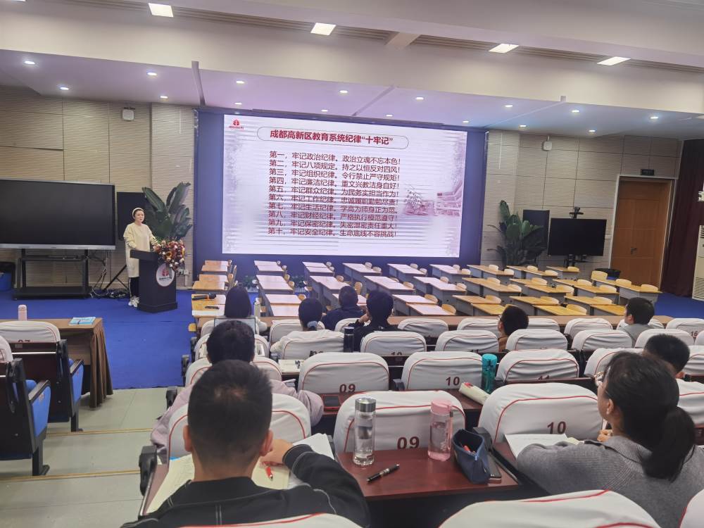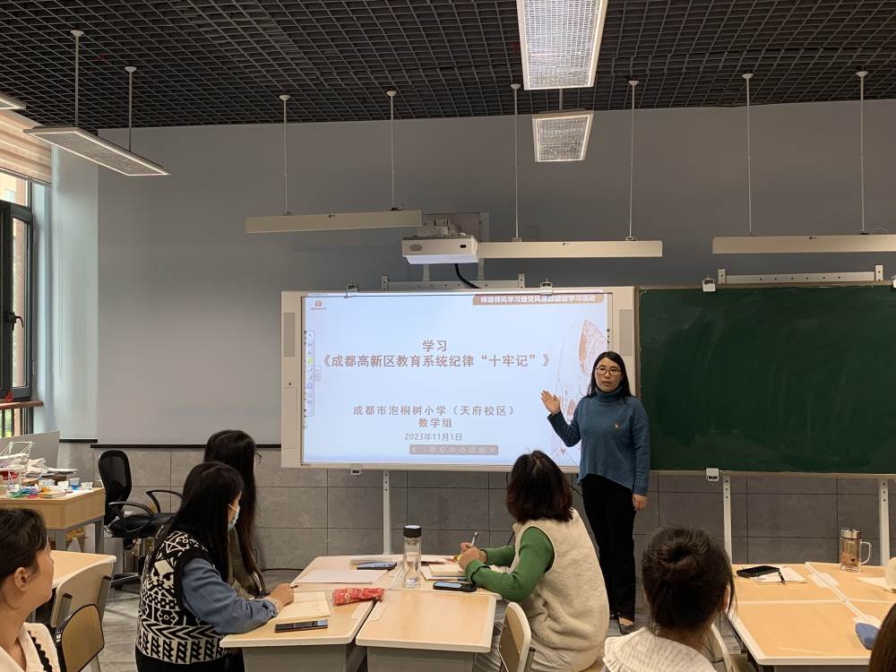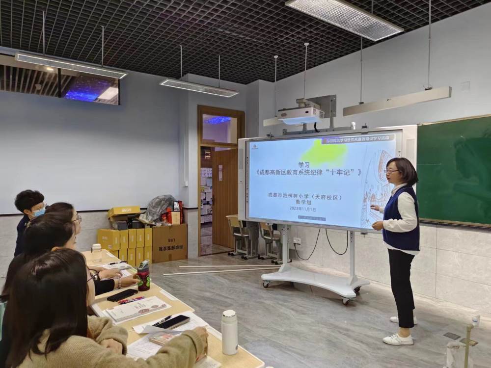 2023年11月1日,我校全体数学组教师分别在多功能厅、科创教室(一)(二)学习了《成都高新区教育系统纪律“十牢记”》。会议分别由欧小丽、汤小婷、杨皎三位老师主持,《成都高新区教育系统纪律“十牢记”》,以党的六大纪律为核心,突出八项规定,强调师德师风、财经纪律、安全纪律等,用铁的纪律推动教育系统全面从严治党。把铁的纪律转化为教育系统党员干部职工的自觉遵循。