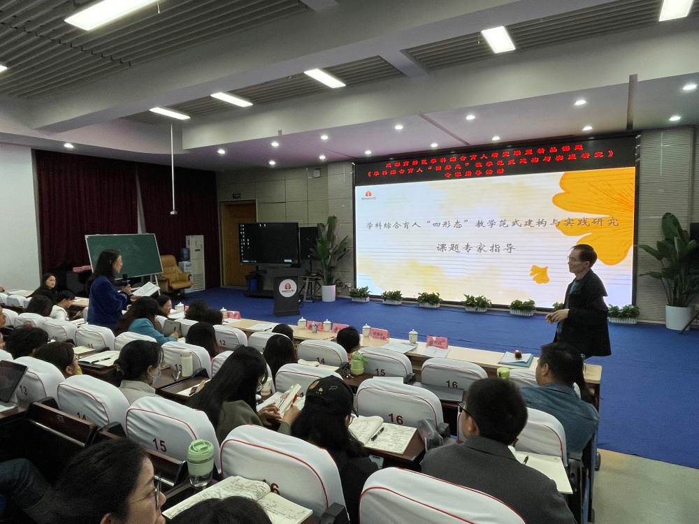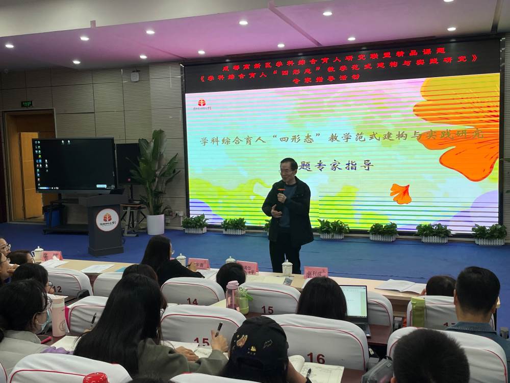 课程、课堂、课题三课联动是学校重要的发展路径,我校作为高新区品质学校之一,承担了区级精品课题《学科综合育人“四形态”教学范式建构与实践研究》,为进一步对课题进行探索与钻研,我校于11月11日上午邀请到了中国教育学会学术委员、义务教育课程标准修订综合组专家柳夕浪教授,对该课题进行指导。同时与会的还有高新区教师发展中心教研员李宇青老师、泡小天府所有课题组成员以及高新区学科综合育人联盟成员。