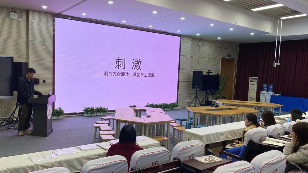 接着由本次赛课优秀青年教师代表张智瑜老师发表对本次活动的感想,张智瑜老师以“刺激”为分享的关键词,结合学科素养、学科融合、课堂实践、育人价值四个方面进行分享。张老师分享了自己课堂转变,提出在课堂上如何抓住学生的好奇心,去提高他们主动、自发性地学习是重点。希望能保持课堂教学内容的层次性,尝试分享式的教学,尽自己最大的努力让学生在快乐中学到知识,掌握能力。