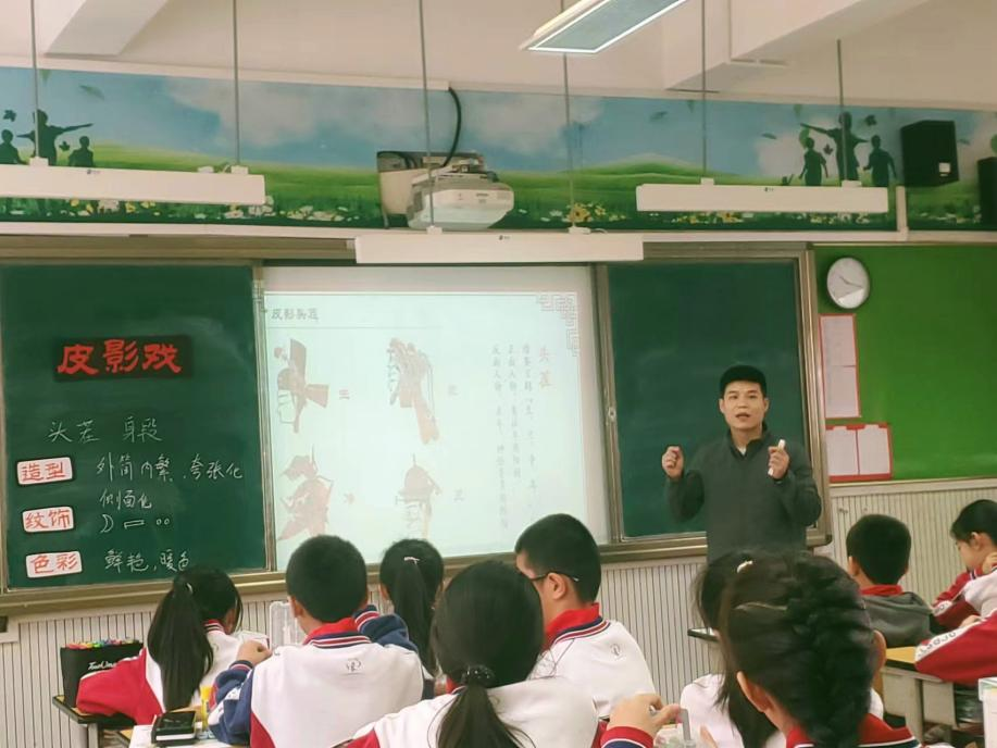 王峰老师《皮影戏》教学中,注重皮影与多学科的融合,通过真实的校园展览活动情境激发学生学习兴趣,从皮影的历史、头茬身段、制作工艺,以及造型、纹饰、色彩赏析等角度,让学生对皮影传统文化有深入的认识。同时通过视频欣赏、合作探究、对比赏析等方法让学生多方位、多角度了解和感受皮影的美感与文化底蕴,激发了学生对传统文化的热爱之情。