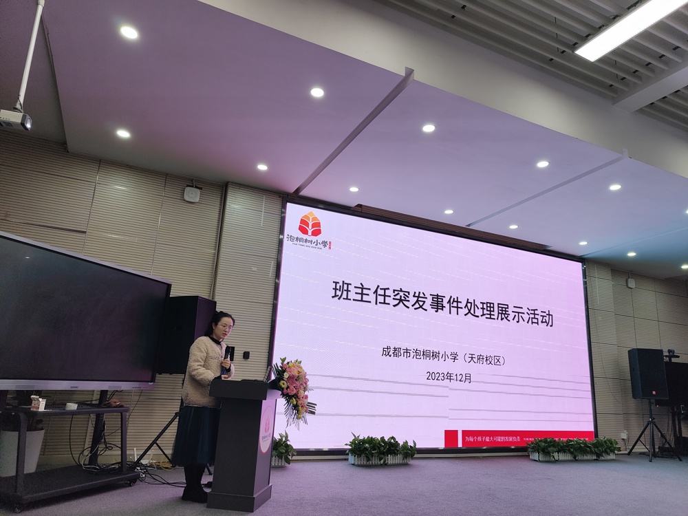 为了培养班主任应对突发应急事件的分析和处理能力,提升班主任队伍“治班育人”的专业素养,成都市泡桐树小学(天府校区)于2023年12月开展了“突发事件处理”展示活动。活动中,老师们随机抽取突发事件案例,当场准备,制定解决方案,评委老师点评,其余老师参与讨论,提出自己的建议。