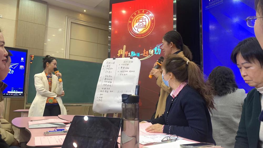会议的最后一项,由北京师范大学国际与比较教育研究院博士生导师、副院长滕珺教授主持,在滕教授的带领下,参会人员分成六个小组,研讨两堂课例中印象最深的学科元素和国际理解元素,并思考学科融合和国际理解之间的关系。我校的四名种子教师积极参与讨论,分别代表各自小组发表了看法。