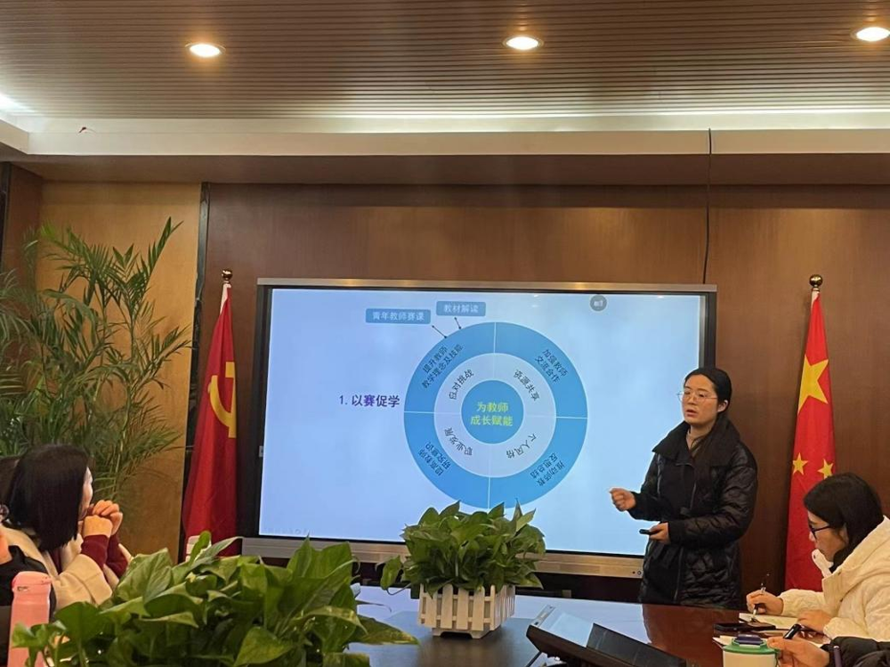 数学学科组长钟悦老师则以《四条赋能路径 助力教师成长》为题,分享数学学科教研培工作方向,主要围绕“应对挑战、资源共享、个人风格、职业发展”四个方面,通过“以赛促学、搭建平台、问题驱动、课题引领”四条赋能途径来进一步提升教师教学理念及技能,加强教师交流合作,推动教师反思总结,提高教师研究意识。