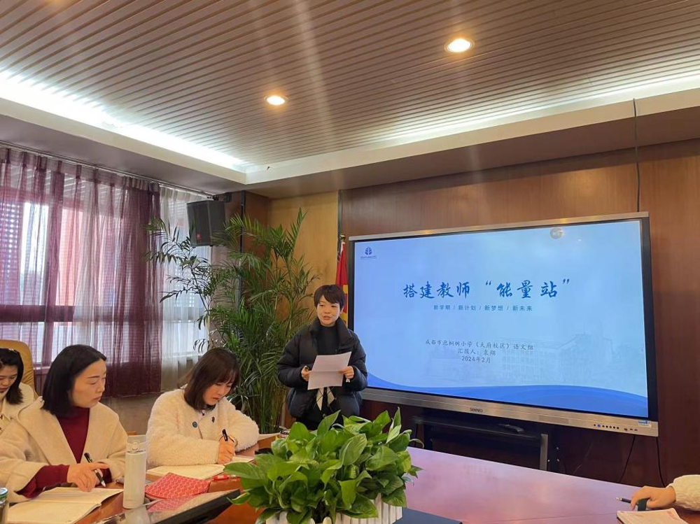 语文学科组长袁翔老师以《搭建教师“能量站”》为主题,分享了本学期的教研组工作计划,聚焦课程、课题、课堂,深化课堂改革,构建多层次的教研体系,依托课题,促进教师专业素养成长,搭建平台,促进教师个性化发展。