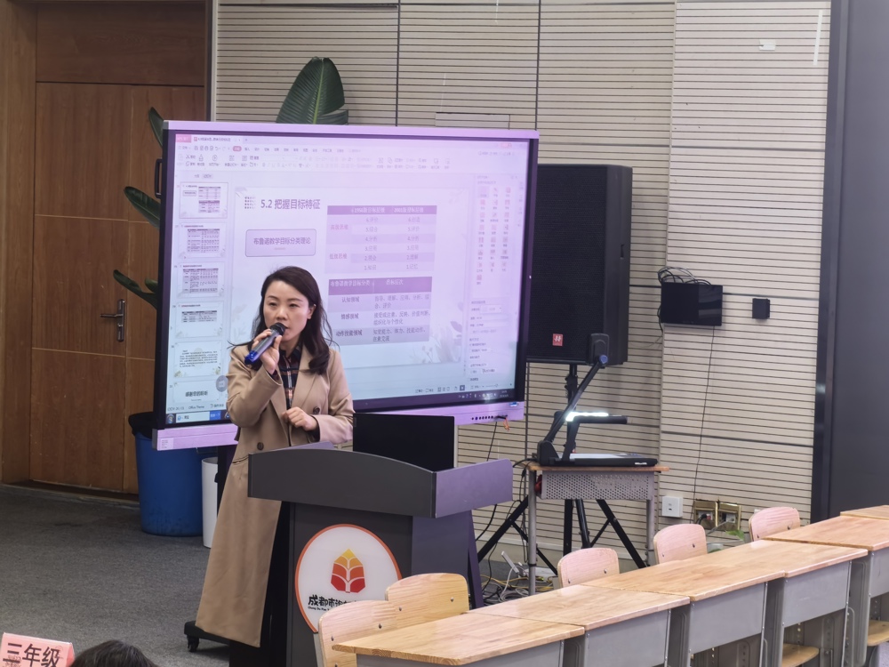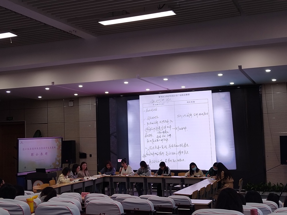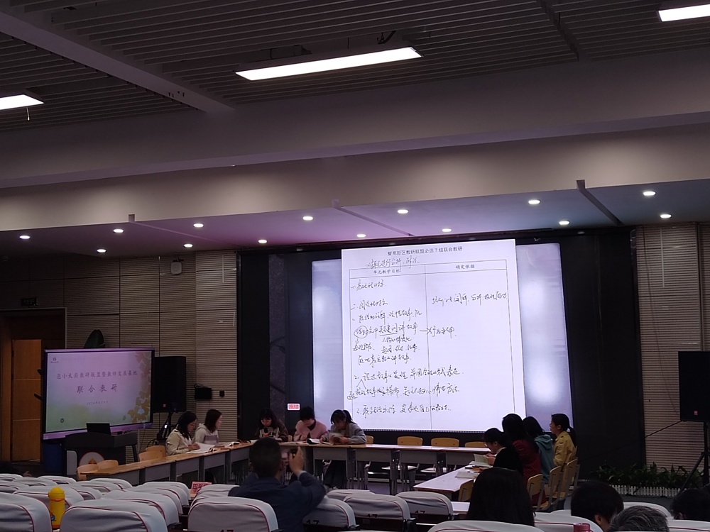 专题讲座结束后,全体老师们学以致用,就自己所教年级教材确定思辨性阅读与表达任务群训练单元的教学目标,自主思考后,年级组讨论、交流,再每个年级组上台汇报本组思考。