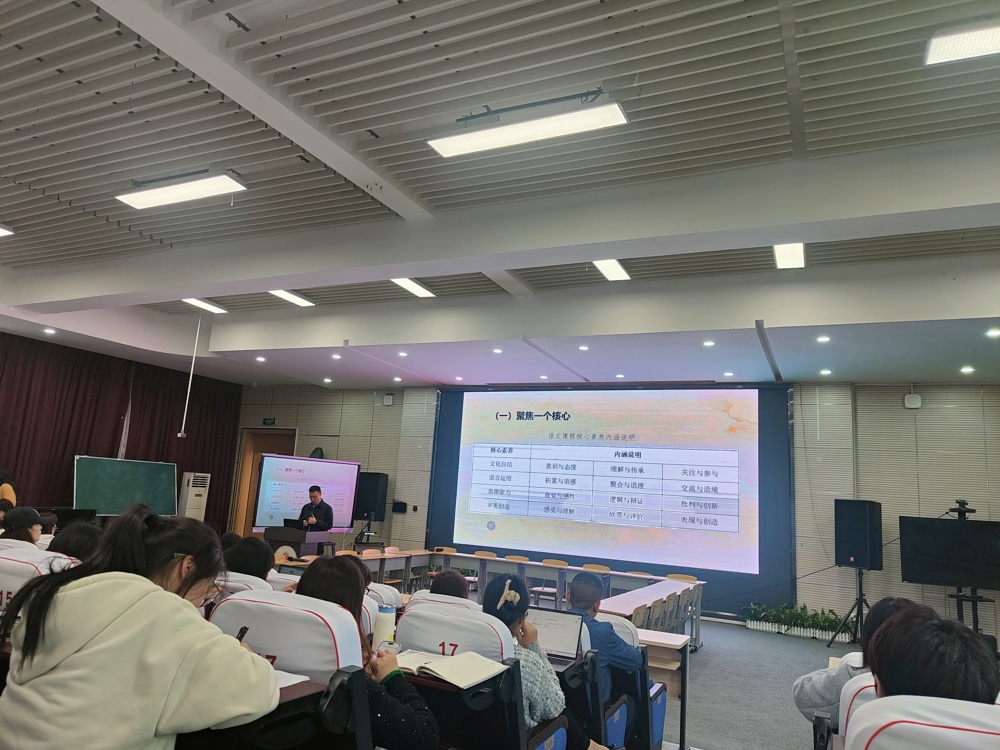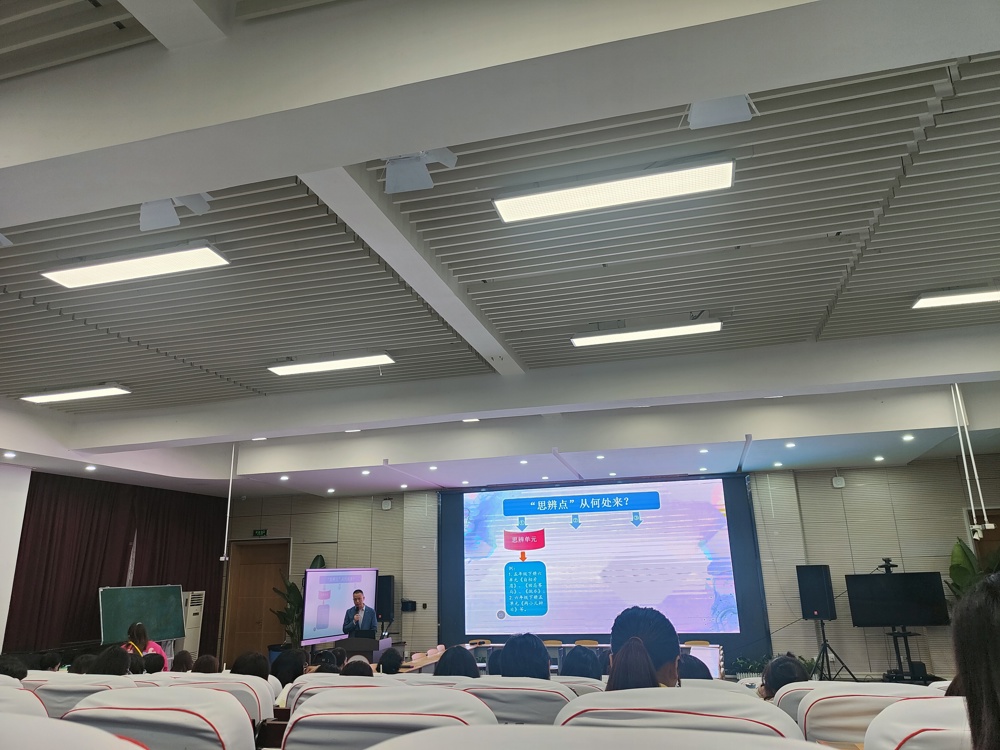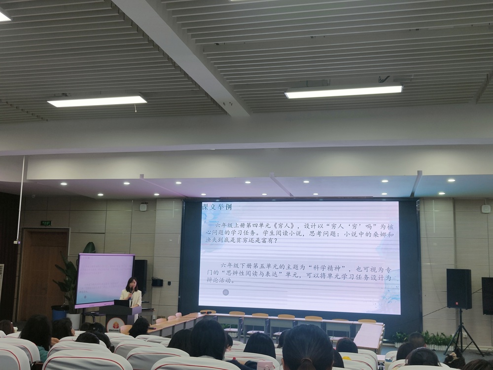 活动开始由领衔人谢飞鹏老师和殷铭老师做了“思辨性阅读与表达的任务与目标确定”的专题讲座。两位领衔人从课标解读走向教材重构,深入浅出地指导老师们如何设计思辨性阅读与表达的教学目标。