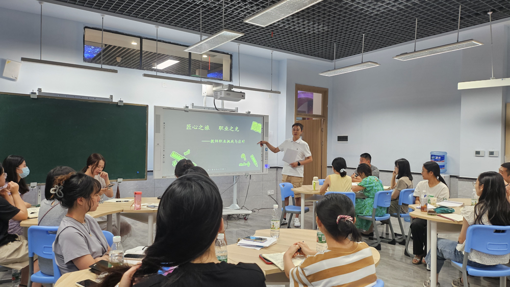 2024年8月20日下午,一场以教师职业挑战与应对为主题的新教师培训在学校科创中心热烈开展。本次培训由赵靖主任主持,聚焦教师职业挑战与应对,为新教师们开启了职业生涯的重要篇章。