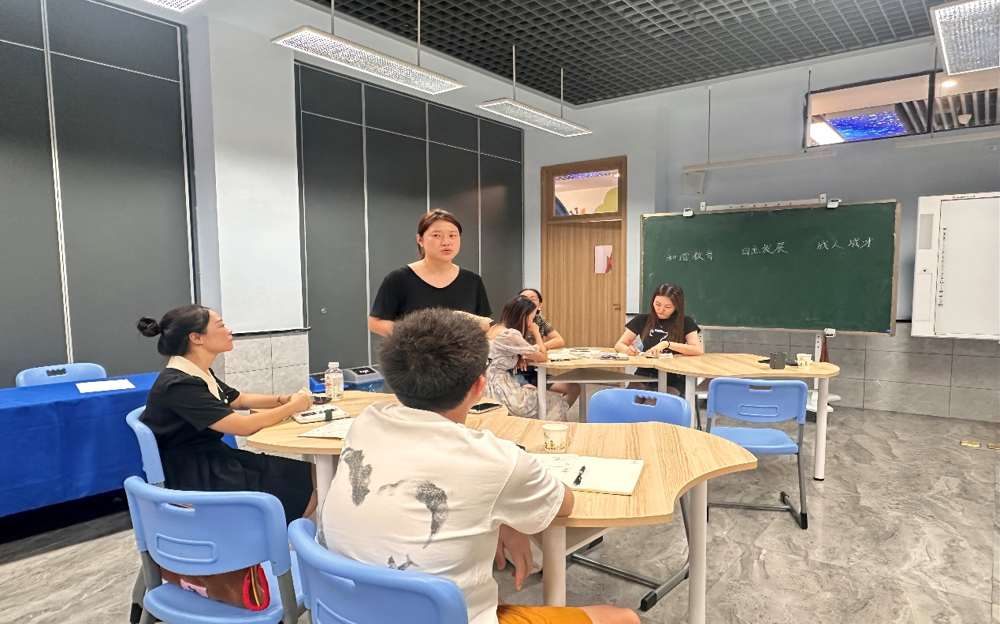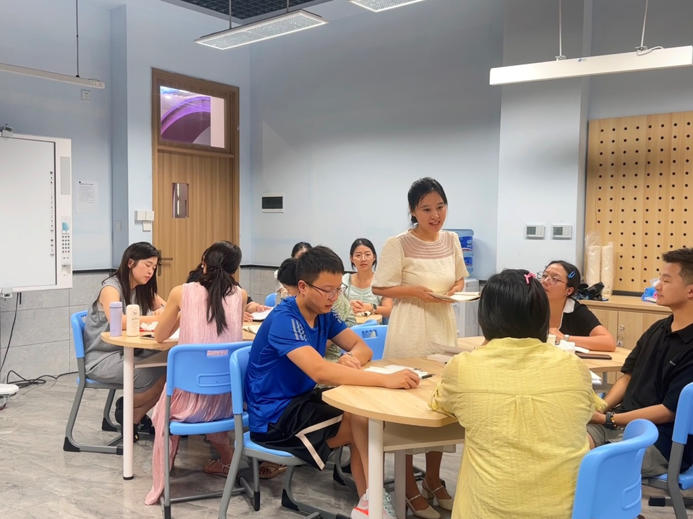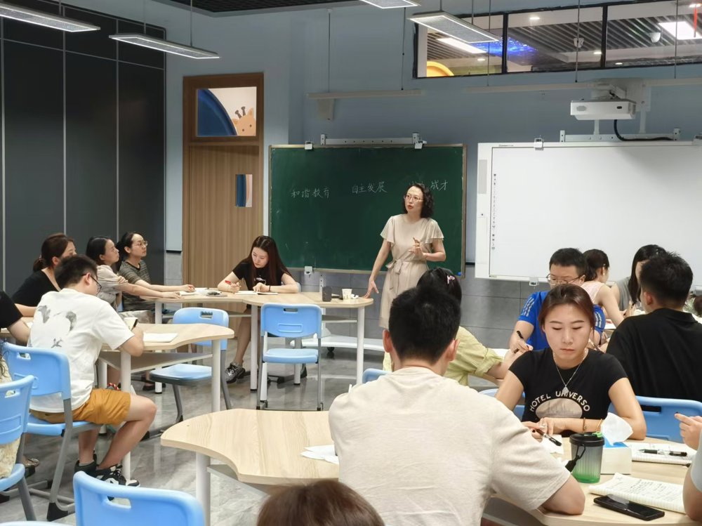 在培训过程中,宋茜校长提出了一个重要的思考问题:作为教师,如何将学校的办学理念与自身的教学实践相结合?首先,她让每位青年教师独立思考,再以小组为单位,在组内进行深入讨论,交流彼此的想法和经验。然后,各小组的代表进行分享。老师们从多角度诠释“和谐教育 自主发展 成人成才”的教育理念,提出了许多具有创造性和实践性的建议,为其他教师提供了宝贵的参考和启发。最后,宋茜校长总结发言,和谐的关系旨在让学生认可教师,从而获得家长认可。要经营好这样的关系,教师要进行自主发展,从认知、行动、素养、学识等方面不断提升自己,最终帮助学生成人成才。