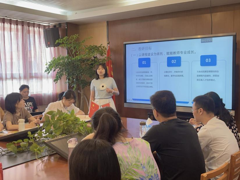 英语组雍杨老师为大家介绍了英语组的教研目标、具体措施及月工作重点等内容。一方面制定泡天“英语节”1.0活动方案,促进基础课程、拓展课程、研究型课程等课程体系的落地,另一方面,英语组将有计划、有目的地开展课题研究,做到每次研讨人人有思考、有分享、有任务,促进组内教师专业发展,提升英语教研团队整体专业水平。