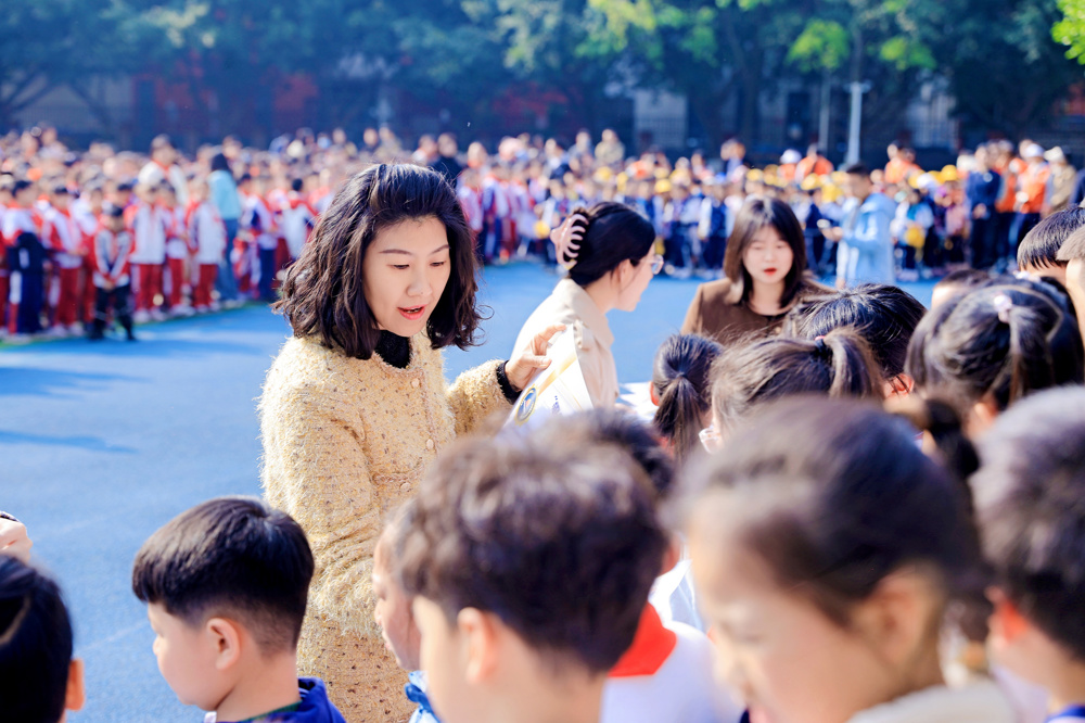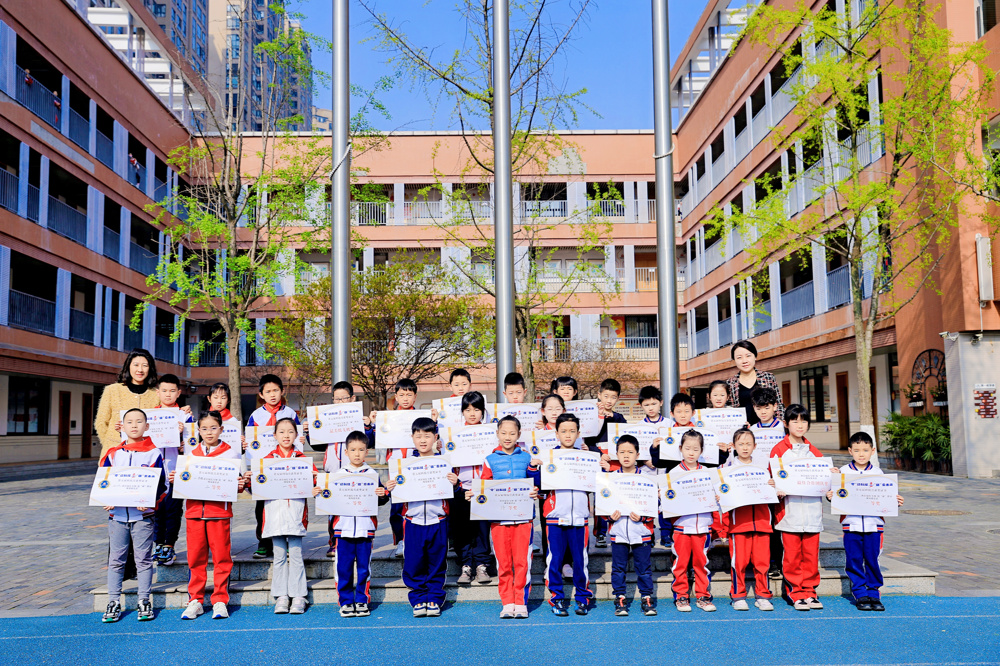 此次科技节,同学们踊跃参与现场赛和巅峰对决,围绕低碳科技展现奇思妙想。李老师宣读比赛结果时,国旗下的孩子们满脸喜悦。