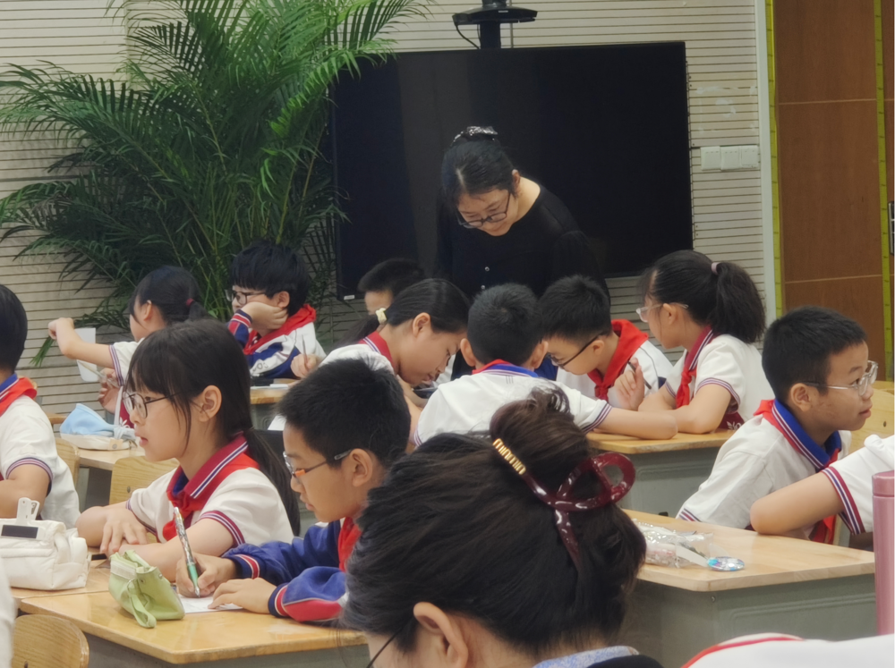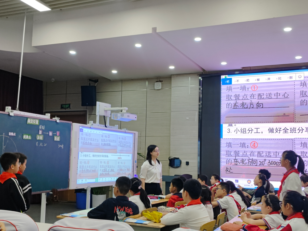 五年级组的汤小婷老师分享了《确定位置》课例,她从中国热点新兴技术入手,从无人机引入如何准确“确定位置”。她结合学情,自然地让学生感受到观测点的重要性。同时理解方向和距离是确定位置的两要素,关联已有知识,加强知识间的联系,为学生打下坚实基础。