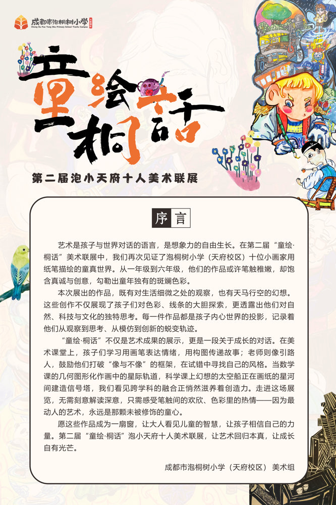 成都市泡桐树小学(天府校区)美术组将持续深化美育实践,为孩子们搭建更多逐梦艺术的舞台,让每一颗艺术种子都能在校园沃土中生根发芽,绽放独特的光彩。