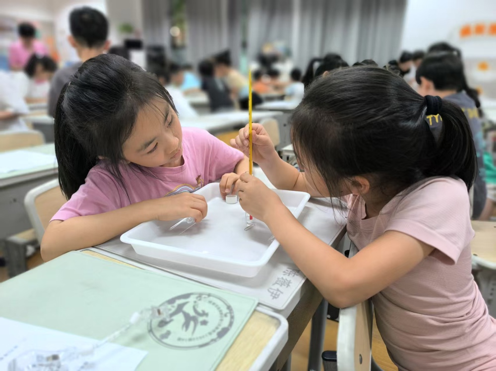 实验过程中,宋茜校长也加入其中与同学们探讨实验的发现。在之后的探讨环节同学们积极分享了自己的观点,描述水是如何结冰的、温度计的变化以及水与冰的异同。通过本节课相信同学们对水结成冰块有了更多的理解和体验。课堂生动展现了STEAM教育"做中学"的特色,激发了低年级学生的科学探究热情。