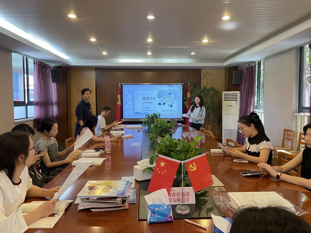 2025年5月19日下午,我校四年级全体语文、数学教师齐聚国际会议室,参加“橙果作业”系统使用培训。本次活动由张媛媛老师主讲,陈洪娟主任、侯文婷主任全程参与。