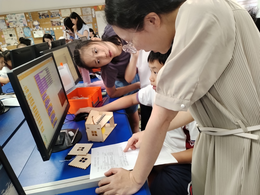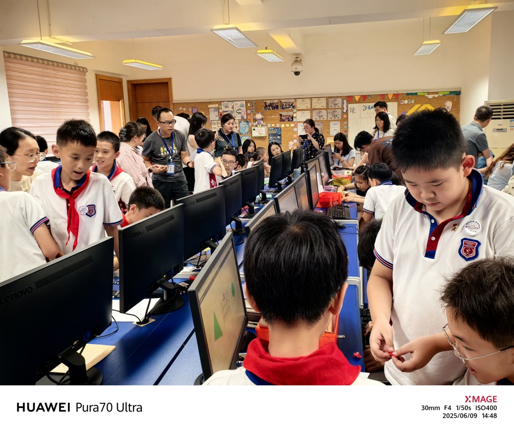 下午,参访教师实地考察了学校的信息化建设成果,包括智慧班牌、AI作业批改系统等创新应用。在计算机教室,孙弘洋老师和杨眉老师共同带来的《AI智慧小屋》社团课例,展示了学生利用编程与人工智能技术解决实际问题的能力,引发热烈讨论。而专题讲座《能之所及 分之所向——能分特长队课程分享》,则详细介绍了学校如何通过分层分类的个性化课程体系,满足学生多样化发展需求。