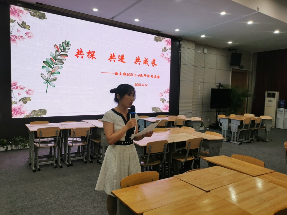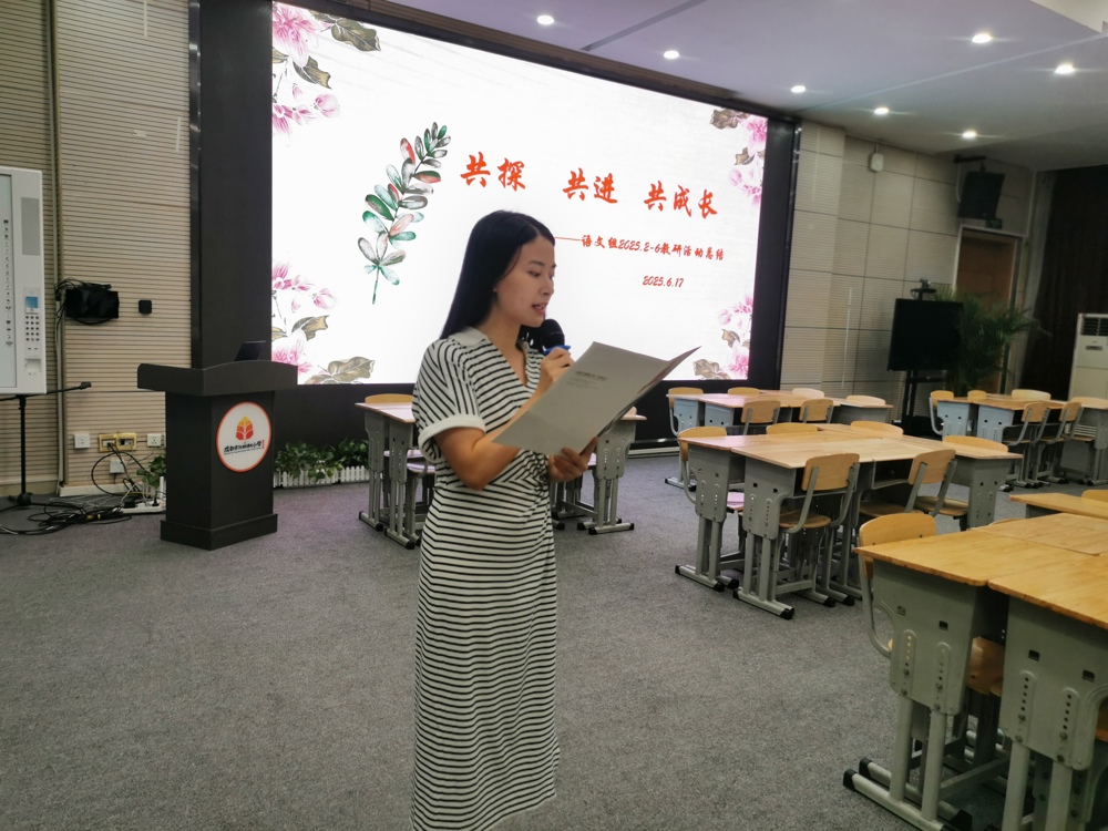 总结活动在一至六年级备课组长的精彩汇报中拉开帷幕。各年级深耕教学沃土,提炼出独具匠心的实践结晶:一年级来方老师以《深耕基础,点亮童心》为纲,描绘启蒙教育的温度;二年级杨萌老师《趣读妙写,拾级而上》展现语言进阶的巧思;三年级杨小燕老师《泡桐叶茂栀子香,共研共行共成长》道出团队协作的芬芳。四年级陈春兰老师《初心在方寸,咫尺运匠心》聚焦教学的精细打磨;五年级李丹老师《研韵飘香,语润华章》彰显教研融合的深度;六年级赵颖老师《凝聚智慧,共绘蓝图》则擘画了毕业学段的系统规划。六份总结如六颗星辰,共同点亮了语文教学的特色天空,凝聚着团队的心血与集体智慧的微光。