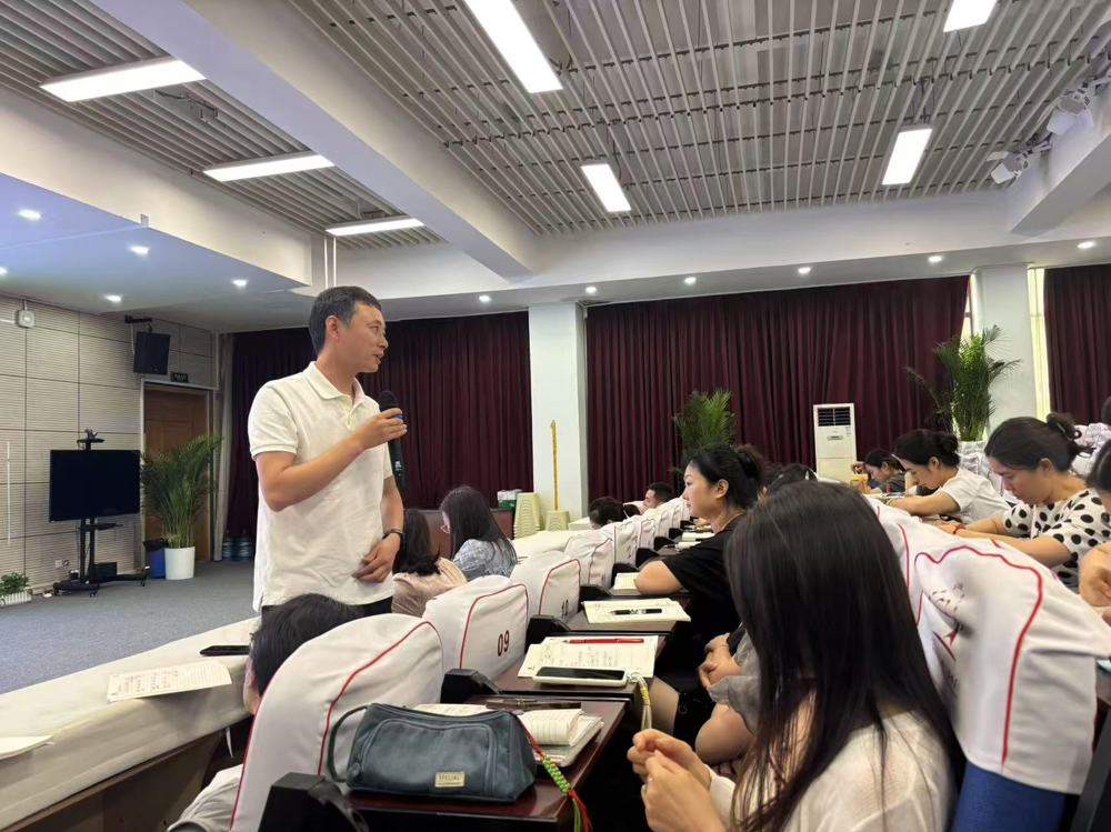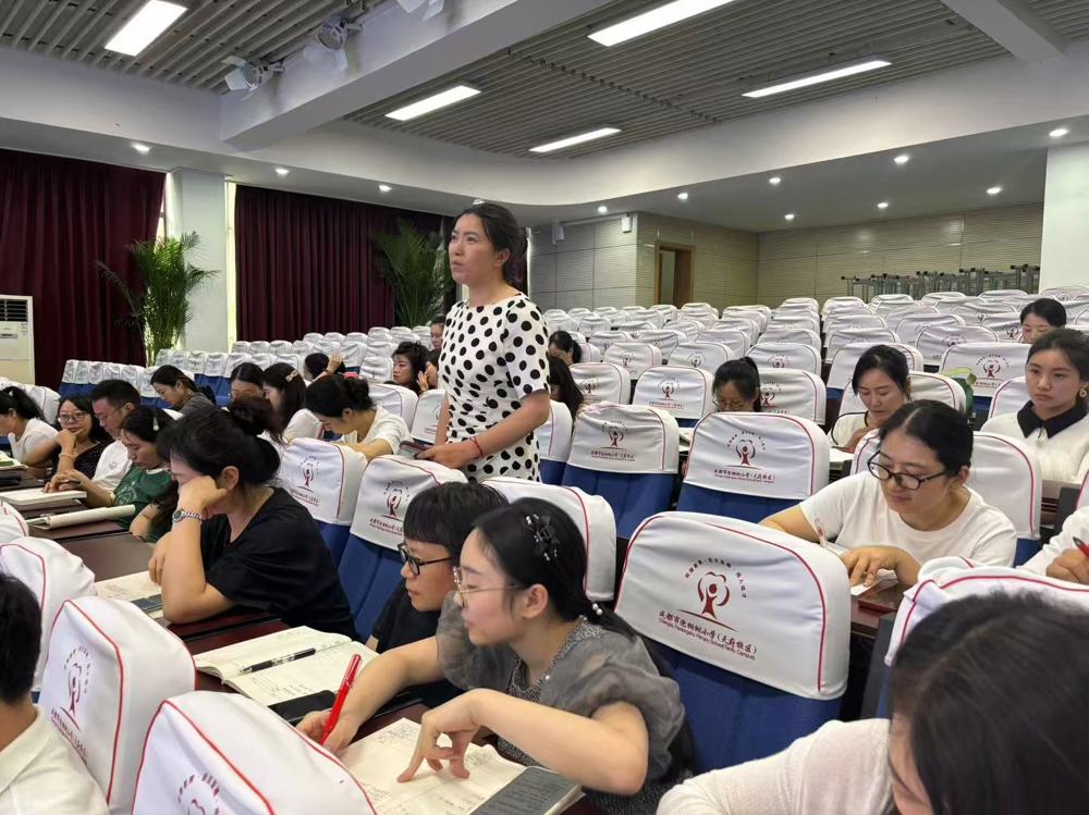教师发展中心欧小丽主任围绕“学术氛围”与“专业成长”提出殷切期望。她回顾了2022年9月至2025年6月的三年学带骨干培养历程,强调“每学期一节精品课、一次微展示”是必修课——“就像学艺要展示一道‘色香味俱全’的菜,这是专业成长的见证”。她提出,教师需以“三专”模式(专业读书、专业写作、专业交往)深化成长:读书是“8小时外的积累”,写作是“反思的沉淀”,交往则是“课堂外的碰撞”。同时,她呼吁教师“向内卷自己”:用稳定的情绪、专业的自信应对教学挑战,以“约会般的心态”投入课堂,用“价值观引导”传递教育温度。