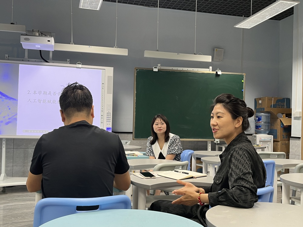 紧接着,活动进入了热烈的讨论环节。全体科创组老师围绕“本学期是否尝试运用人工智能赋能教学”这一前沿话题,展开了深入的交流与探讨。老师们纷纷结合自身的教学实践,分享了在日常课堂教学中运用人工智能的心得体会,既有成功案例的喜悦分享,也有面对挑战时的深刻反思,现场气氛活跃而富有成效。