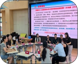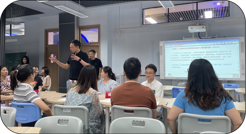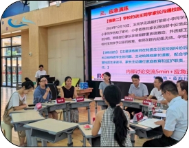 活动的高潮部分当属场景对抗演练。按照学段划分,三个场地同时展开实战模拟。律师团队与学校教职员工分别扮演家长、教师及中层管理干部等角色,围绕“学生心理问题沟通”、“校园纠纷处理”及“突发事件应对”等核心主题,展开了一场场紧张而有序的实战演练。参演的老师根据剧本迅速成立应急小组,利用学习到的沟通技巧和平时积累的绩效沟通经验,迅速进入角色,与“家长”进行积极有效的沟通。观摩的老师一边聆听一边积极的讨论,每个人都全身心的投入在演练场景中。