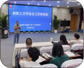 会议伊始,安全办副主任周瑞首先就开学各项筹备工作及教育教学过程中的安全工作开展和安全教育工作落实、“1530”日常安全教育细节和老师们进行沟通和交流。随后,学校分管安全的副校长赵靖对上学年全校的安全工作给予了高度评价,肯定了各位班主任及全体教职工在安全工作方面的重视和细致,总结了上学年老师们在处置突发事件时候的经验教训,对即将开展的培训讲座以及应急处置演练提出了具体的要求,希望老师们积极参与演练和思考问题的应对良策,祝愿大家通过此次培训达到增强意识、升级技能,收获满满。