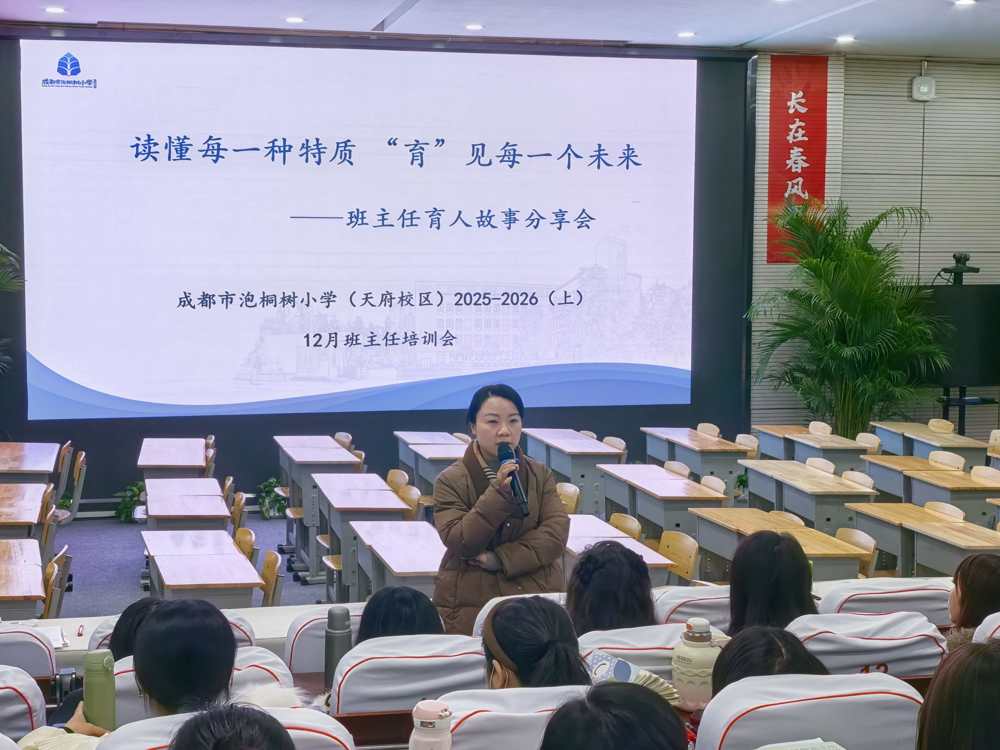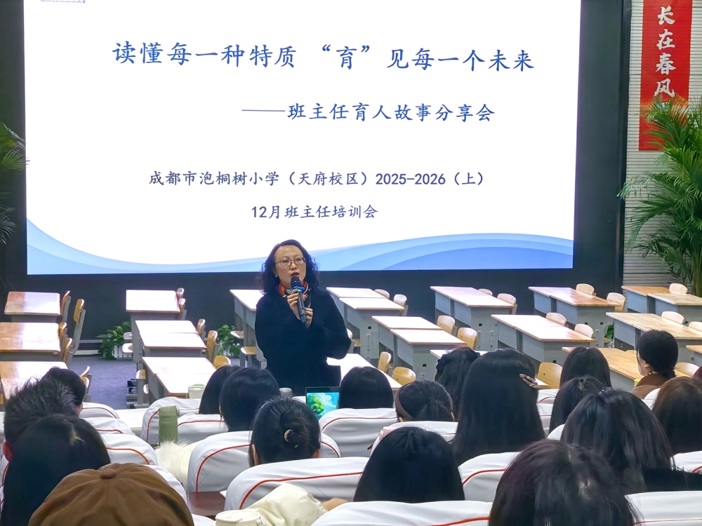 2025年12月22日,成都市泡桐树小学(天府校区)举办了一场主题为“读懂每一种特质,‘育’见每一个未来”的班主任培训活动,旨在提升班主任的专业素养与育人能力,为学生的成长助力。此次培训内容丰富、干货满满,为班主任们带来了一场知识与经验交融的盛宴。