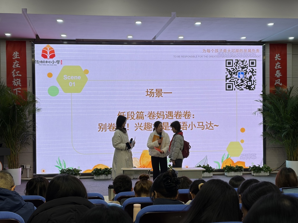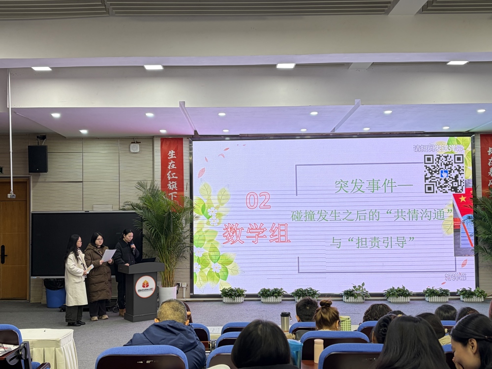 各学科组围绕《教师的语言力》一书的精髓,结合教育教学实际,以案例剖析、对话访谈、情景剧演绎等多种灵活形式,展开了富有深度与温度的分享。 语文组以“点燃火花——课堂中的精准表扬”为主题,展示了如何通过具体、及时的肯定激发学生学习自信;数学组聚焦“突发事件中的共情沟通与担责引导”,呈现了理性与温情并存的危机处理智慧;英语组围绕“破冰共育——家长会后的有效鼓励”,探讨了家校协同中语言桥梁的搭建艺术;音乐组以“以言引趣——小学低段课堂沟通技巧”为题,分享了如何用语言旋律激活课堂氛围;体育组通过“协同成长——教研中的提问与鼓励”,展现了团队教研中支持性语言的力量;科创组以“拨正航向——处理纠纷的建设性批评”为例,诠释了批评如何成为学生成长的阶梯;美术书法组聚焦“激发潜能——挫折中的智慧提问与反向激励”,演绎了如何用语言点亮学生内心的光芒;品综心理组则以“化解心结——师生谈心的综合语言艺术”压轴,深度呈现了如何通过语言走进学生心灵、促进心理健康。八场分享紧扣教育现场,形式生动、内容务实,充分展现了语言在不同教育情境下的艺术与实践智慧。