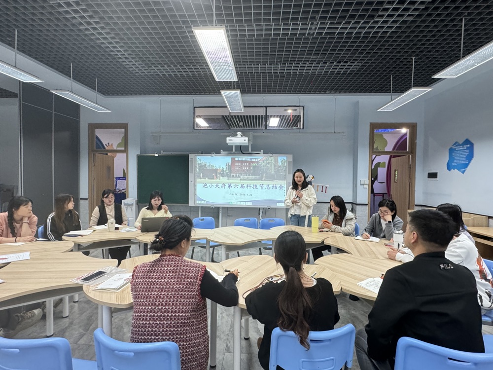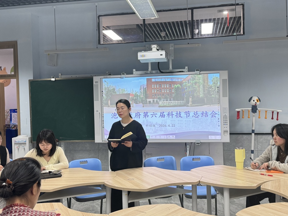 2026年4月22日,科创组先后开展了《比较不同的土壤》公开课听课评课及第六届校科技活动总结会两次专题教研活动。活动由科创组长付杨主持,周明芳副校长、陈洪娟主任、张利成主任及科创组全体教师全程参与。