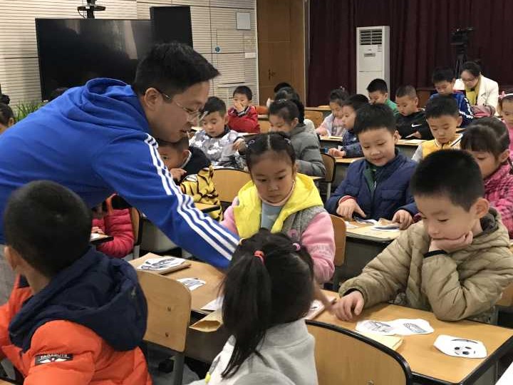 第二节课是由文大成和一年级五班的孩子带来的。文老师刚劲浑厚的嗓音,吸引孩子们时时关注课堂。文老师对于本课的重难点把握相当准确,孩子们也在不断的分享中,一步步突破重难点。