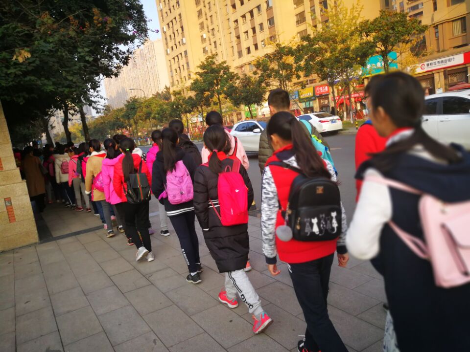 11月24日,成都-----难得的暖阳天,六年级所有孩子整装待发,期待接下来实践活动的精彩。