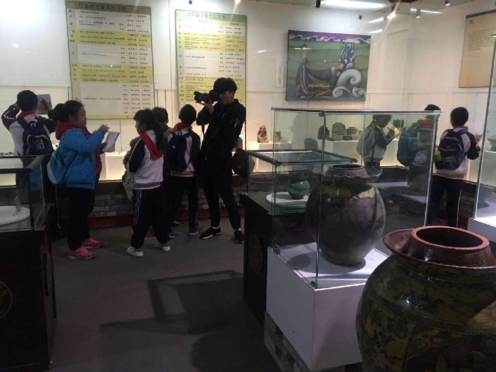 接着我们来到的是典藏馆,里面主要陈列了一些川菜饮食器皿,包括煮食器、盛食器、酒器、用餐器、茶具等。另外,藏品中还包括了与川菜有关的文字介绍和书籍、图稿等。工作人员向我们介绍了诗酒起源、东坡肉、川菜味形分类等川菜知识。好多同学都是第一次听说这些知识,大家都纷纷记录下来,期待着回家和爸爸妈妈分享,说不定天天做着川菜的妈妈都不了解这些呢。