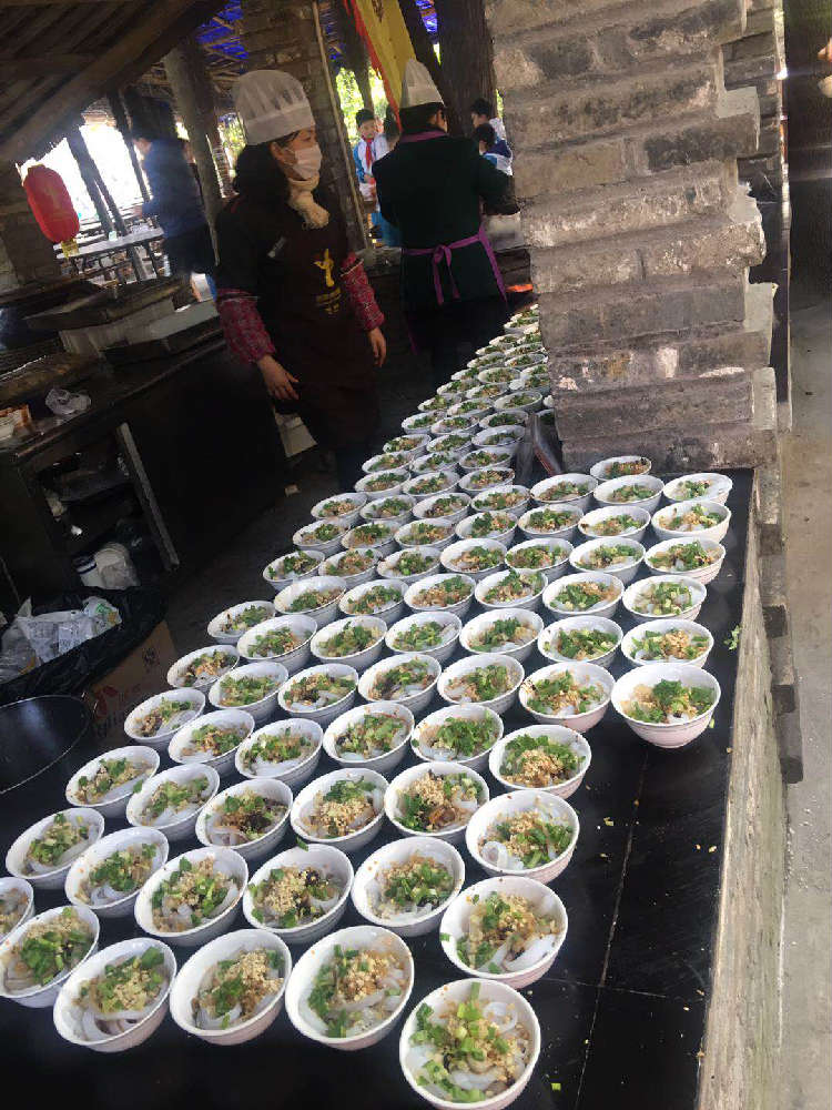 吃饱喝足后,我们来到了手工工艺展示区,观赏让我们最为震撼的“蒙眼大刀金丝面”表演。一位厨师叔叔用纱布蒙上眼睛,手拿一把又长又大的菜刀切一块面皮,他侧着头,用耳朵去听切面的声音,用手摸索着下刀的位置和力度,一刀刀切下去,一根根细如发丝的面条有节奏地列队而出。当叔叔揭开纱布,把面拿起来,穿进一根针里,大家“哇”地惊叫起来,竟然这么细。