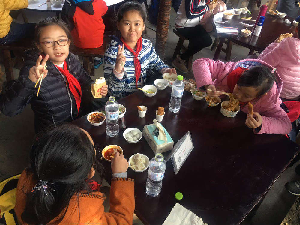 看到这里,我们禁不住流出口水,当老师告诉大家,我们的午餐是在这里随意享用展示的小吃时,大家都兴奋地跳了起来,于是迫不及待地冲向小吃区。看着琳琅满目的美味,凉面、凉粉、抄手、饺子、血旺、葱油饼、汤圆……我们都不知道该先吃什么了,想把这里的每一样小吃尝遍,但是又怕自己的肚子不够装。