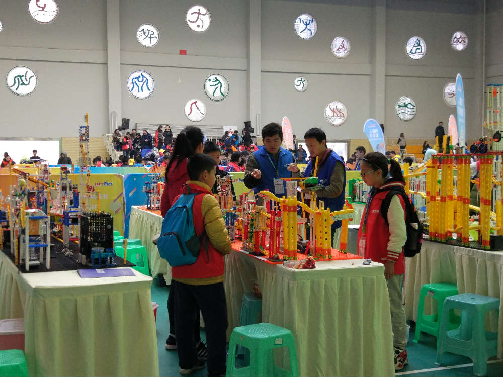 吃过午饭后,下午两点,比赛开始。经过简单的准备,队员们进入赛场开始了三个小时的漫长搭建过程,而老师们则移步看台,紧张又焦急地等待着。从一个个零碎的零件,到平整的地板,拔地而起的各种结构,这个拼搭的过程,队员们已经练习了千百遍,就等着在这一刻居人之上。基本的搭建工作做好了以后,就是一遍遍的调试了,不厌其烦地调试,增强关卡的稳定性,提高成功率。