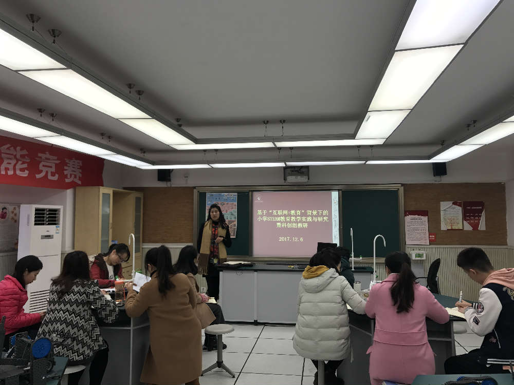 12月6日上午8:40,科创组教研活动如期开展。科创组全体老师参加了本次教研活动。活动中,陈洪娟主任、杨眉老师就基于“互联网+教育”背景下的小学STEAM教育教学实践区级课题研究相关工作和老师们进行讨论和沟通,落实了课程目标、课程设计、课程评价、案例收集等内容的确立和实施。紧接着,付杨老师就本学期期末考试方案等做了详细的布置和安排,确保各项工作有序展开。