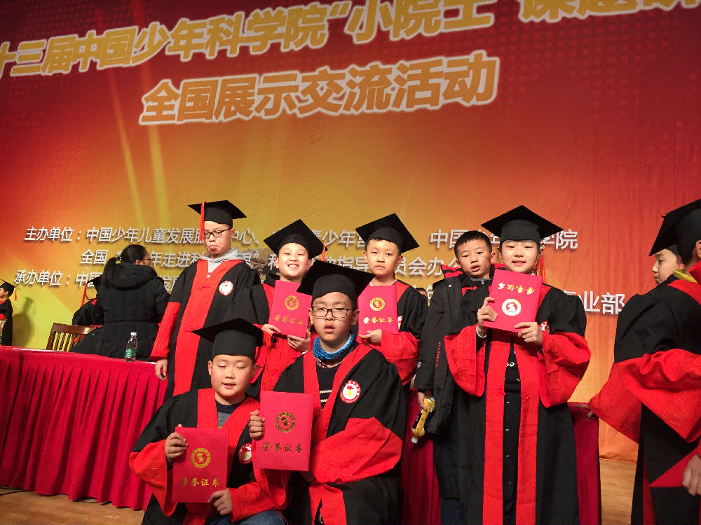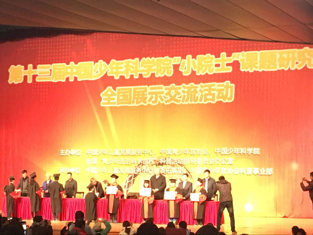 2018年1月1日,我校学生在带队老师的陪同下参加了全国第十三届中国少年科学院“小院士”课题答辩活动并在活动中取得了优异的成绩,共32名学生参加,其中一等奖(中国少年科学院小院士)8名,二等奖(中国少年科学院预备小院士)14名,三等奖(中国少年科学院小研究员)10名。在此次活动中,学生们认真准备,信心满满,沉着冷静,为中国的科技发展和环保事业付出了微薄的力量,同时培养了学生的科学素养和科学探究精神。