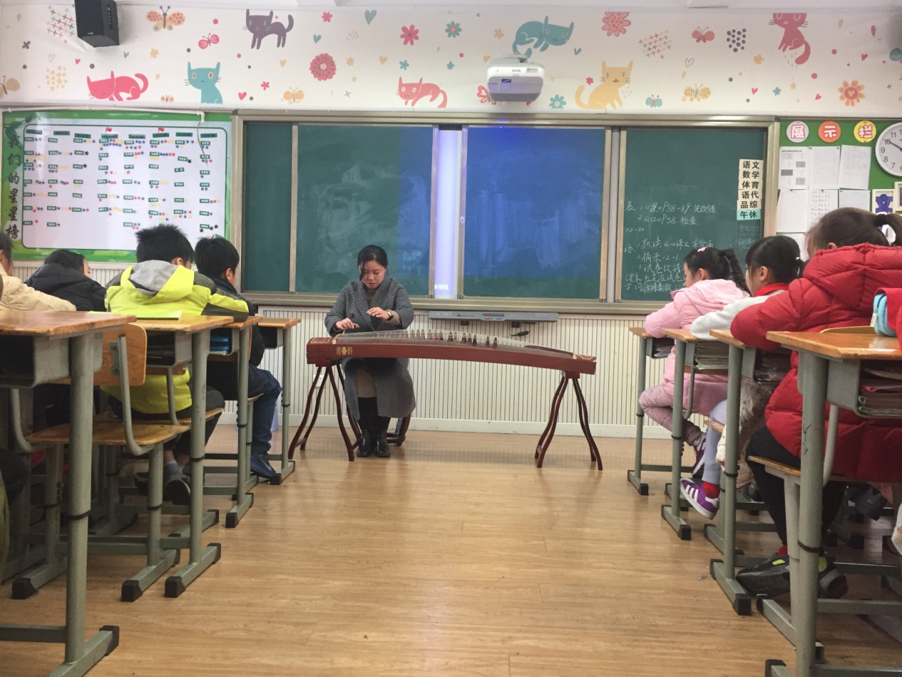 开课伊始,罗老师以一曲古筝名曲征服了孩子们。音乐缥缈间,仿佛看到了超凡脱俗、飘逸素雅的仙子著一袭白纱在绿荷满香的湖边弹拨筝弦。潺潺淙淙的流水,宛如远处飘来的天籁,伴随轻柔洁白的浮云,蕴在幽弦慢拨中。