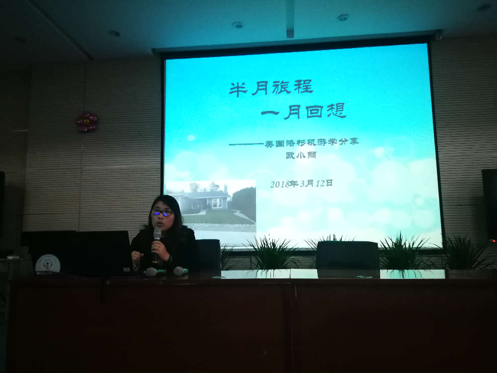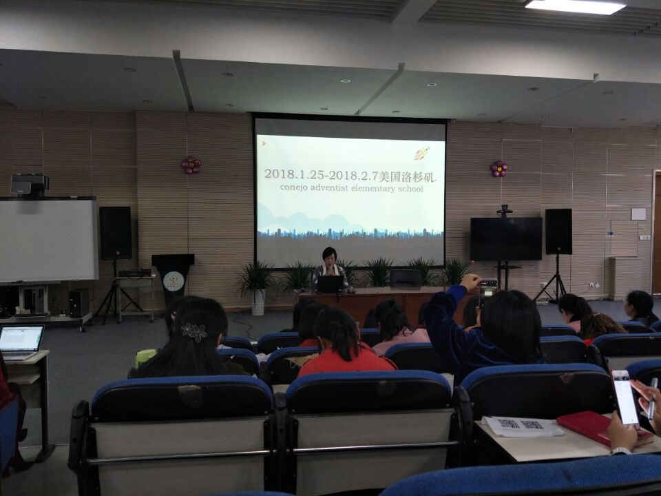2018年寒假期间,泡小天府美国研学之行从成都起航,开启了美国洛杉矶研学13天的美妙旅程。3月12日,在全校教师大会上,此次研学的两名带队老师带着满满的收获为老师们分享了美国行的见闻。
