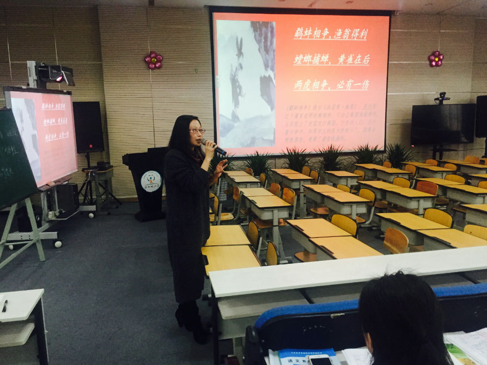 然后,分别由罗艳梅老师和徐熙老师就《矛与盾》《鹬蚌相争》两则文言文进行小学与初中的对比教学。罗老师以“读”为主线,展现“读准—读通—读懂—读好”四个层次,顺应学情,如同剥笋层层深入;渗透学法,巧妙拓展,呈现了一堂朴素且扎实的小学文言文课堂。徐熙老师风趣幽默,具有极高的语文教学功底,课堂节奏紧凑明快,抓住关键,分析鉴赏;延伸比较,思考探究,整堂课行云流水,让大家耳目一新,展现了徐老师独特的教学魅力。同课异构,让老师们看到小学与中学老师文本解读的异同,目标制定的异同,课堂实施的异同……然后,求同存异,深入思考,相信大家从中获得了足够多的启迪。