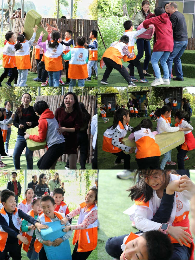 风和日丽,绿草如茵。3月25日,由泡小天府三年级四班家长志愿者精心策划组织的“与春天握手,携快乐同行”亲子拓展活动在近郊“邛人部落”创意游戏生态农庄开展。离开拥挤喧嚣的城市,走进鸟语花香的田野,各种与自然相融入的拓展项目不仅有趣,而且充满了挑战。大小泡泡们被分成AB两组,每组又分为两个小分队。在首先进行的推选队长、确定队名和口号环节,各队便表现出了勇猛的气势。团结队、狼王队、王者队、勇往直前队队名威武,“齐心协力,团结必胜!”、“勇往直前,无人可挡!”、“狼王狼王,胜者为王!”“王者荣耀,王者无敌!”各队口号响亮,气势如虹。第一个挑战项目是破冰足球接力赛。AB小组两队队员各围成一个圈,将一个足球放在圈中间,用脚运送到场地另一边,球不能出圈,用时最短者胜出。比赛一开始,各小队有立刻投入行动的,有先排兵布阵的,有意见分歧的,有积极协调的,当最终齐心协力完成了任务的那一刻,团队合作的成功带给了大家欢欣鼓舞。第二项真人俄罗斯项目掀起了激烈竞争的高潮。四队队员在起点争夺拼图图形送到另一端拼接墙,谁先把拼接墙拼满为胜。运送过程中时时面对的各队队员的抢夺让任务完成困难重重,小泡泡们不惧险阻,一扫平日里的学子风范,小宇宙火力全开,巾帼不让须眉,敢闯敢拼,让大泡泡们刮目相看。当轮到大泡泡们进行比拼时,氛围变得轻松有趣,激烈的争夺中又不乏相互的谦让,欢笑声,加油声让平日就算不苟言笑的父母也瞬间回到了欢乐童年。当分出胜负的那一刻,大家用欢呼雀跃分享着胜利的喜悦,失败在欢乐面前也变得淡定从容。丰盛的午餐过后是自由活动时间,孩子们彻底放飞了自我,荡秋千、捉小蝌蚪、踩水车……在一艘巨大的海盗船四周,各种水上项目更是激发了孩子们的挑战欲望。水上滚筒、网索攀爬、过铁索桥……其中的水上荡桥更是让孩子们乐此不疲,从开始的小心翼翼,到后来干脆赤脚上阵,踏浪而行,欢声笑语里定格下美好时光。下午进行的指压板障碍接力赛和穿越警戒线让我们看到了小泡泡们不怕困难,勇敢挑战自我的一面。塑料指压板跑道凹凸不平,上面还布满了硬硬的小刺,只脱了鞋在上面站着脚底都搁着生疼,还别说要去快速钻过跨栏杆、踩跷跷板、抓吊绳、匍匐过钻网、踏板击球了。孩子们的表现却让人心生敬佩,为了让团队赢得胜利,每个小队员都努力把自己做得最好,克服重重障碍,咬着牙,忍着疼,在赛道上飞奔,在警戒线中穿越……旁边同伴的加油声也不绝于耳,正是在坚持中,我们赢得了成长!这次亲子拓展活动让大家收获满满,既激发了孩子们的自信心和责任感,又锻炼了他们的团队合作能力和独立能力,更增加了他们的勇气和沟通协调能力。“与春天握手,携快乐同行”,让孩子们在春天里放飞童年,在快乐中收获成长!图:陈科羽妈妈 孔缪缪爸爸 廖浩宇爸爸