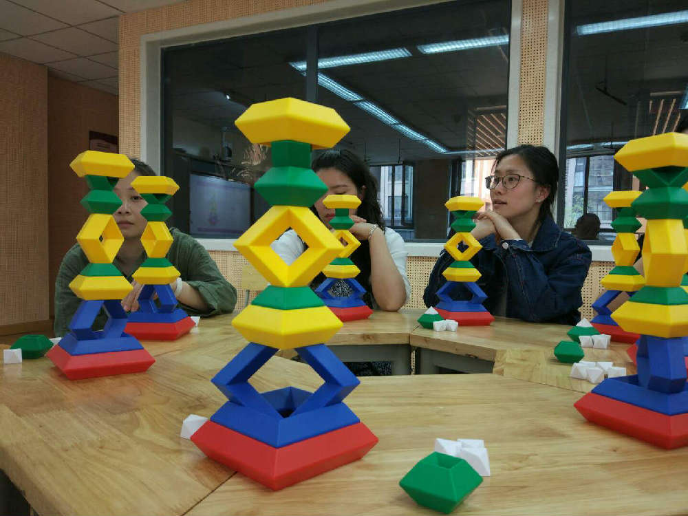 之后 ,王老师又结合案例与活动就如何使用这套学具培养学生思维能力、想象力、合作意识,以及学具管理等方面进行分享,期间我校数学组老师们都参与其中,边做边学,体验学习。