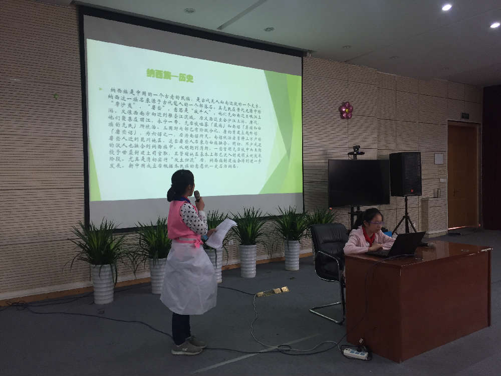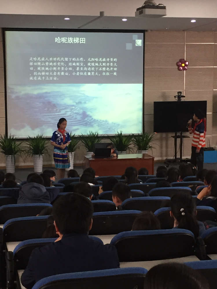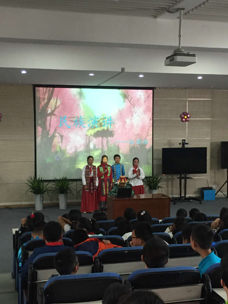 4.17日,筹备已久的“中国心民族情泡天行”系列活动之 ——六年级语文组民族风情宣讲活动在王瑛老师的组织下、各班主任的带领下,第二节下课后在学校阶梯教室如期举行。六年级六个班各班选派代表宣讲各自班级所选民族的特色。按照活动安排,各班选手从民族发展演变历史、服饰、饮食、房屋结构、风土人情等方面一一作了精彩介绍。全年级学生安静的听着听着,不时发出热烈的掌声。这次活动,不仅开阔学生的视野,增长了民族知识,还锻炼了学生搜集资料、整理资料的能力!