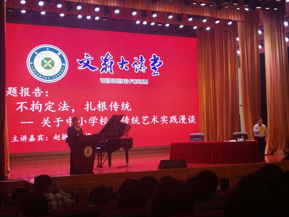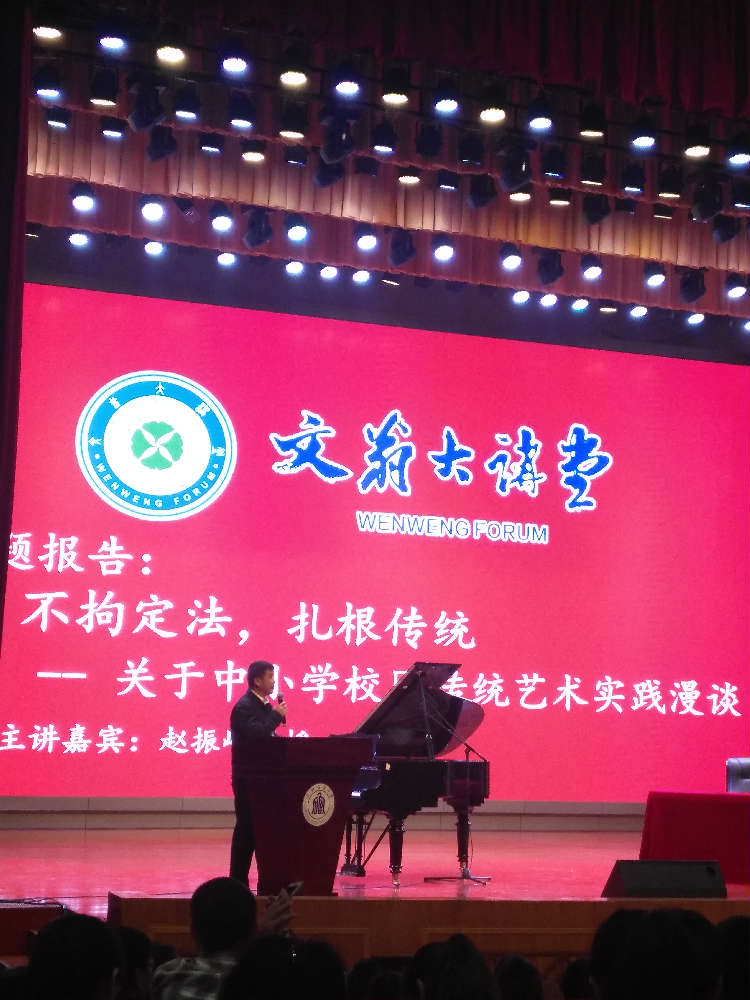 我校派出两位主要负责声乐教学及合唱社团建设的余世凤、唐梅老师参加本次学习。本次活动的主讲嘉宾是,天津音乐学院民族声乐系主任、硕士导师赵振岭教授。会议主题《不拘定法,扎根传统―关于中小学校园传统艺术实践漫谈》